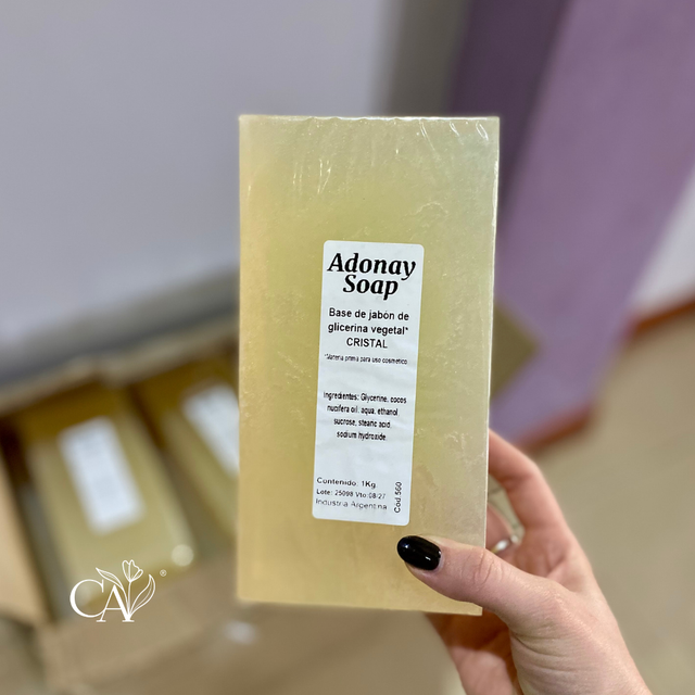Barra de jabón ámbar (glicerina) marca Adonay Soap o Spa, según stock. Sin agregados de aceites o mantecas. Cont. neto: 1 kilo