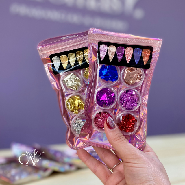 Pack 6 papel foil metalizado: rosa bebe, rosa, rojo, violeta, lila y azul - tonos plata, oro y cobre. Ver más detalles