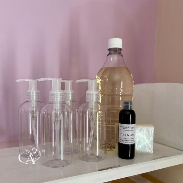 Contenido: 1 litro de jabón, 1 esencia, 1 mica de 5 gr y 4 envases 250 ml. Ver más detalles