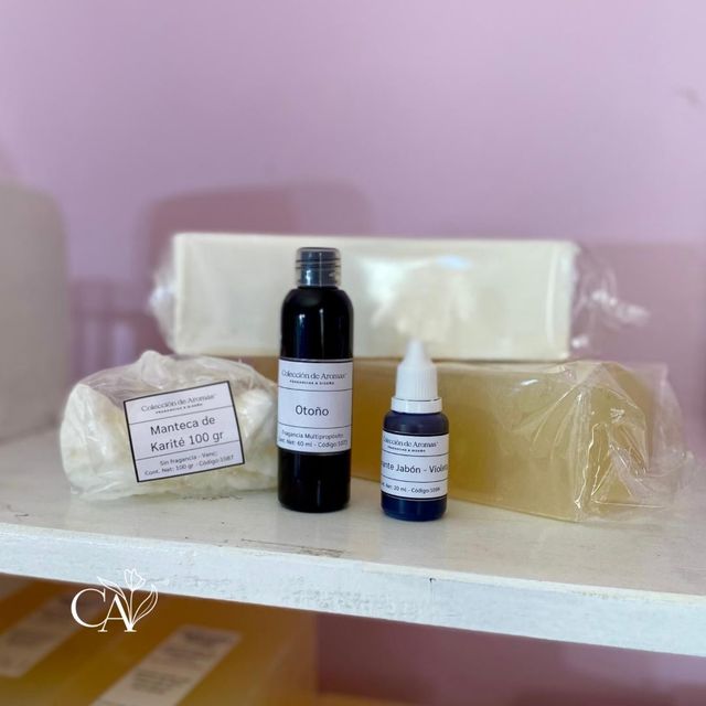Contiene: 1 kg blanco, 1 kg glicerina, 1 esencia, 1 aceite o manteca, 1 extracto y 1 colorante. Ver más detalles